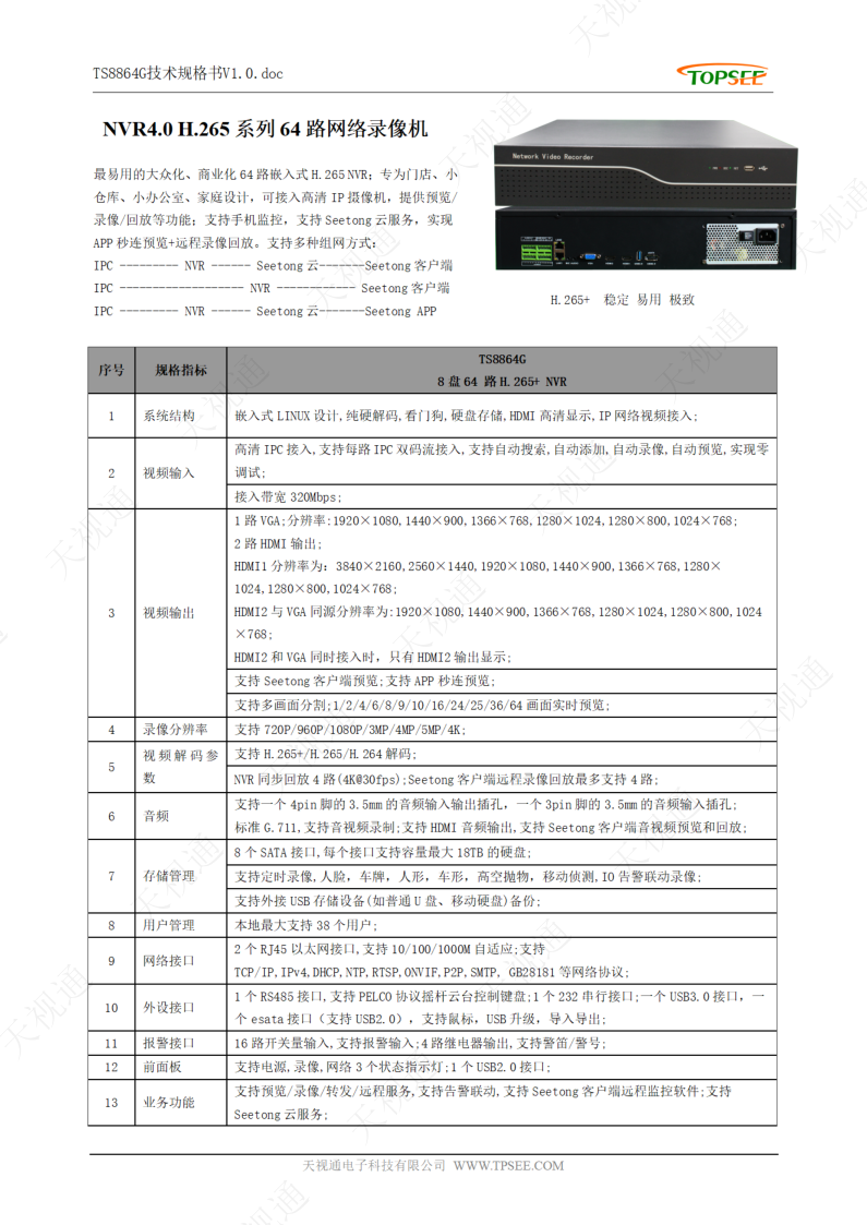 解碼能力:1*4K/4*4K/4K+5*5MP/4K+7*5MP/9*5MP/2*4K+8*4MP/16*2MP/64*D1